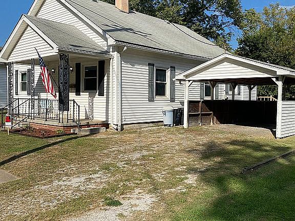 Look no more! This one is for you!! Quiet neighborhood! This is a move in ready craftsman style 2- 3 bedroom, 1 bath home. (Currently the 3rd bedroom is being utilized as a laundry room) The hook ups are still in the basement if you would like to change back to bedroom. All rooms freshly painted this summer. Living room has a fireplace with gas insert and the fireplace brick have German Schmear and the wall on each side of the fireplace has new shiplap. The living room is 14'3" W X 23'7" L The Kitchen/dining combo is 14'4" W X 16'3" L The front bedroom is 9'9" W X 11'10"L The middle bedroom is 8'4" W X 10'7"L The back/master bedroom is 8'7" W X 14'3"L with a 6'W X 6'6" L walk in closet. Hallway is 3'3" W X 14'L Bathroom is 5'1" W X 10'8" L Living room, front bedroom and back bedroom have bamboo flooring in very good condition. Kitchen, bathroom and laundry room have premium waterproof vinyl plank flooring. Kitchen has Amish Cabinets, custom backsplash, stainless steel stove and hood vent, refrigerator, and microwave. Dishwasher is black. Kitchen adjoins the dining area where there is a sliding glass door that you walk out onto a 10' W X 30' L deck to add in your outdoor living. New steel entry front door installed in 2019. All new windows and sliding glass door installed in 2020. New gas forced air heat furnace installed in 2022. Central air. New 40 gal electric water heater installed in 2022. Unfinished half basement with a crawl space that has barrier. Unattached 1 car carport. Approximately 10' W X 12'L shed/workshop on concrete pad with window air unit in back yard. Yard is spacious and there are no neighbors immediately to the south. Please call or text 618-923-1163 to schedule a tour!