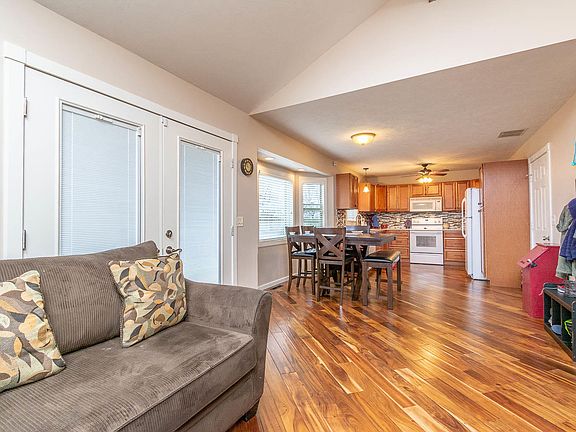 Beautifully updated 3 bedroom home in Nixa. All the work is complete, from new siding, windows, wood flooring, trim, cabinets, upgraded bath and master bath and more. Newer roof and hvac system. Enjoy the open floor plan, pellet wood stove, even the back yard with a privacy fence and over sized workshop/storage shed with full sized garage door. No detail was overlooked in this beautiful home! Make your appointment today!!