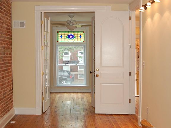 2 level, 2 bed, 2 full bath apartment available after June 1. Located in Canton area in Brewers Hill. Off 95/895 near Hopkins Hospital, Bayview Hospital walk to Canton. Great neighborhood with parking. Quiet, safe and near grocery stores and tons of restaurants. Set up is best for a couple or one person. Fully and tastefully renovated, bright, wood floors, exposed brick, french doors, lots of space, 2 full baths; large fully equipped kitchen with granite tops. Layout: Apartment consists of the first floor; a light filled, finished lower basement level and a back yard, with entrances from the front and back. A separate tenant lives on the 2nd floor and shares the main (front) entrance and has separate utilities. Each floor has its own full bath. Lower level is large and ideal for a main bedroom with 6.5 feet ceiling height, closets and washer dryer room. 1st floor consists of living rm, dining rm, full bath and big kitchen (front living room is an alternative 2nd bedroom/office). Includes: washer/dryer, full kitchen, central A/C, ceiling fans. Street parking includes overflow parking behind the house. Wonderful & quiet neighborhood. Address is 708 Eaton Street 21224. Contact Leslie via email for more questions &/or to schedule a showing. Costs: $1,150/month rent; water; electric paid by tenant: based on current tenants' usage, electric/gas averages $80-120/month (each apartment has their own meter and water heater). Summary: 1 month security deposit, 12 month lease, employment verification, landlord refs and a credit check. Sorry, no pets. 12 month lease