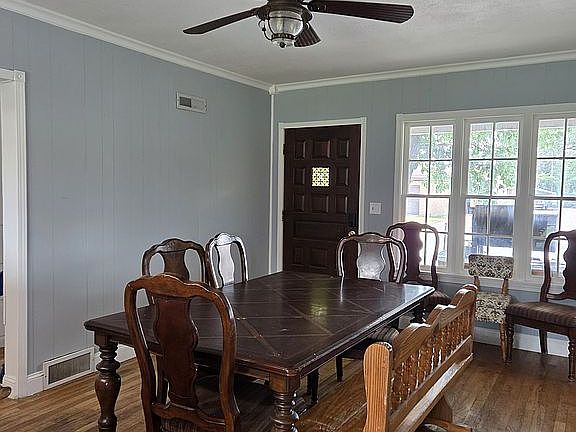 One and a half story home with lots of curb appeal! The kitchen was recently updated, the home has a large living room with trey ceiling, tasteful paint colors, hardwood flooring, fenced yard, newer heat and air units, carport and shed. And, last but not least, a large basement.