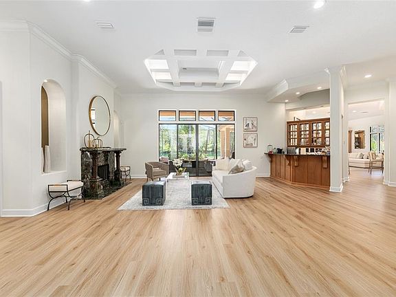 Experience luxury living on 17.5 acres in one of Ocala’s most desirable areas. This estate offers the privacy and serenity of a gated community setting without the added HOA costs or restrictions. While located within Bellechase, this property stands independently from the HOA — giving you freedom and flexibility. Recently renovated and topped with a brand-new roof, as well as new closet systems throughout. This 4-bedroom, 5-bathroom residence (plus office) blends modern updates with timeless elegance. Inside, soaring ceilings, a split-bedroom floor plan, and spacious gathering areas set the stage for both comfort and entertaining. The chef’s kitchen features high-end finishes and opens to a coffee/wine bar, while the master suite includes its own private office in addition to the home’s main office. Step outside to enjoy the resort-style pool and spa, surrounded by lush landscaping, palm trees, and a variety of fruit trees. The property also includes a fully stocked pond for fishing, making it a true retreat. With A1 zoning, it’s perfect for a large family, animals, or anyone seeking a lifestyle that combines luxury and land.