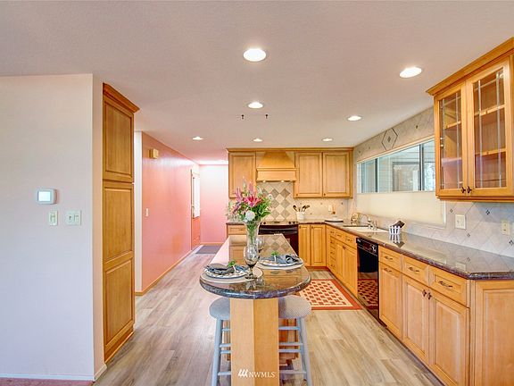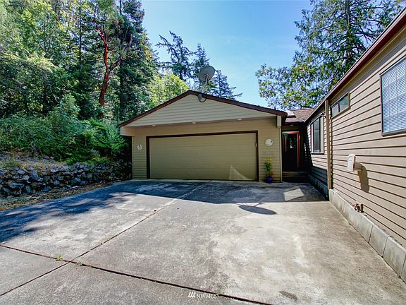 Price reduction! This home comes with lots of room for multi-generational living, creative or home business space. Privacy & low maintenance yard! You are tucked in among the Madrona trees with a partial Bay view. Enter on main to a two-car garage & spacious laundry room. The stylish kitchen has granite counters, tile back splash & wet bar. Custom cabinets & built ins match throughout home. The dining room with deck adjoins the great room with pellet stove, vaulted ceilings & large windows to take in natural light. Main has primary bdrm with balcony, bath w/jetted tub, walk-in closet & 2nd Bedroom/office. Downstairs has a separate entrance, living room & large bonus room, bdrm & bath. Wet bar with full refrigerator. Home is move in ready!