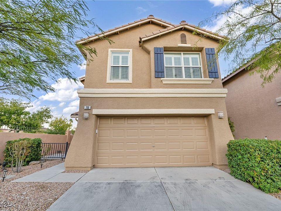 This beauty won't last long, on a corner lot in highly sought after Summerlin community! It's rare that a home comes up for sale in this neighborhood! This home features an open floor plan with a large living and ding room off the entry that is open to the kitchen. The kitchen features a breakfast bar, pantry and is open to the dining area. Custom painted cabinets, granite counter tops, and the refrigerator and dishwasher are newer. The oversized primary bedroom has a large walk in closet and the primary bathroom just had a $20k remodel, expanded, double sinks a step-in tub w/ shower wand. Two secondary bedrooms & a loft are also located upstairs. Plantation shutters, lighted ceiling fans, and wood look floors throughout (except stairs) Gorgeous, low maintenance backyard with a covered patio, + pergola. Upgrades galore! Located in the heart of Summerlin with plenty of shopping & dining options. Conveniently located, with close proximity to EVERYTHING. Location! Location! Location!