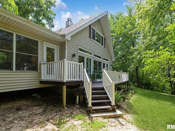 Seller offering $3k closing cost credit to buyer w/ acceptable offer. Relax among the trees in this peaceful 3-bed, 2-bath 1.5-story home just outside Sherrard, offering a permanent retreat from the hustle & bustle of city life. Nestled on over half an acre of wooded land near Fyre Lake, this home provides a sense of seclusion while still being part of a community. Inside, floor-to-ceiling windows invite nature in, & the living room's amazing stone fireplace adds rustic charm. The 3-season room(2014) w/ a gas fireplace lets you enjoy the outdoors for most of the year. The kitchen includes an island with seating (stays w/ home). There's a main floor bedroom & a full bath, with 2 more bedrooms & another full bath upstairs. Seller reserves bath mirror. The unfinished basement houses the laundry area. Some updates include a new roof (2019), new siding (2005), & new windows (2000 & 2022). A whole-house generator ensures peace of mind. Outside, the sprawling yard with mature trees & wildlife can be enjoyed from the large deck. If you want to feel like you're on vacation every morning when you wake up, this is the property for you!