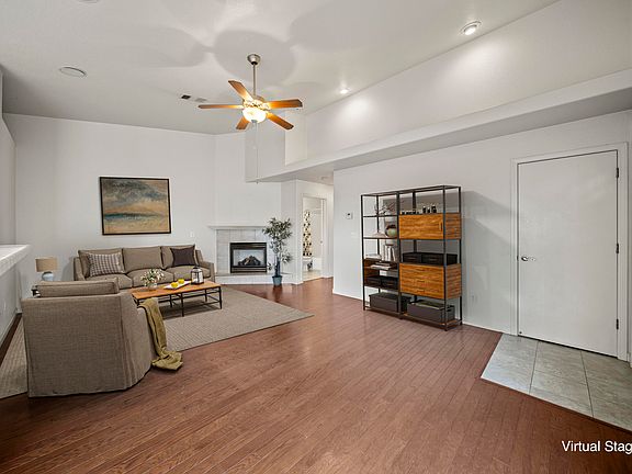 IMMACULATELY maintained and AFFORDABLE single story 2 bedroom and 2 bathroom condo with a single car garage. Cute and functional kitchen opens up to a dining area and spacious living room with a cozy fireplace and high ceilings. Relaxing primary suite complete with a walk-in closet, private bathroom, and sliding door to the back yard. Close to shopping, schools, and walking trails.