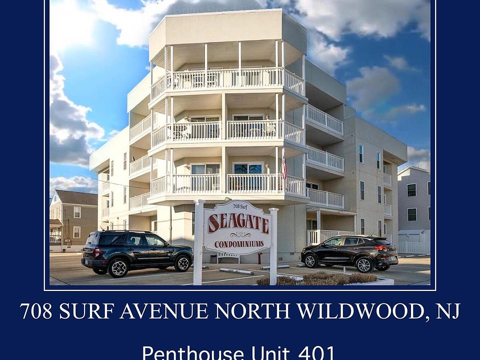 Amazing opportunity to own only 1 of 2 Penthouse Units at Seagate Condominiums at the Corner of 8th and Surf Avenue in Beautiful North Wildwood. You'll love the Ocean Views from your deck as well as a Peek at the Hereford Inlet Beaches. This Home has been lovingly maintained and will be sold furnished less personals. There have been many updates and upgrades throughout the years. The recessed lighting in the living room beautifully highlights the Ship lap accent wall while the under the cabinet lighting makes your Granite countertops pop. The Main Bedroom is Huge, has 3 closets, full Bedroom, couch and also a Stacked Washer and dryer. Want to treat it like a Master Bedroom? Simply lock the hall door to the Bathroom. This bath has a double vanity and upgraded cabinetry and lighting fixtures. The 2nd Bedroom has ocean views as well as access to the deck. This home has an elevator for easy movement of your luggage, groceries and cold beverages. There is a nicely landscaped courtyard as well as bike racks. Owners enjoy 1 car off street parking with an additional 6 shared parking spots for owners only. This property has a wonderful community feel. Short term rentals are not permitted as minimum rental period is 30 Days.