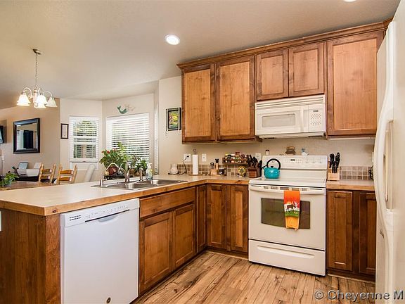 Great ranch with 3 main floor bedrooms including master bath with jetted tub and main floor laundry. Lots of beautiful kitchen cabinets and pantry, open floor plan with vaulted ceilings. Finished basement with bar, wine room, and great family/movie room complete with surround sound, 10 speakers/2 subwoofers, large bedroom, and 17x10 bath with walk-in shower and additional walk-in closet. Fenced backyard with patio, open fields behind with no houses.