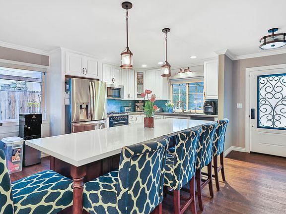 Welcome to this beautifully UPGRADED and meticulously cared for Stonegate home.This 5 bed 3.5 bath property boasts approx 2400 sq ft of living space with DUAL master bedrooms and fully owned Solar! As you approach the home you notice the curb appeal with fresh landscaping newer paint and a potential large RV access. The open concept floor plan downstairs comes with crown molding throughout, huge center island with quartz countertops, wine fridge, custom built stove from Italy, glass backsplash and vinyl flooring. Dining room is equipped with wood burning fireplace and open to the living room with French doors leading to outside. Massive master bedroom downstairs is equipped with vaulted ceilings, gas burning fireplace, and ceiling fan. Gorgeous en suite bath has dual vanities, spacious walk in closet, sunken Jacuzzi tub and large shower. Upstairs contains 4 additional bedrooms (one w en suite bath)and a good size loft with crown molding. Through the French doors in the backyard, you will find a tranquil yard with fresh landscaping, fruit trees, deck/sitting area, play area, dog run and a covered patio. Additional features include dual pane windows, tankless water heater, 5 ton AC and newer furnace and ducting. This property has all the bells and whistles