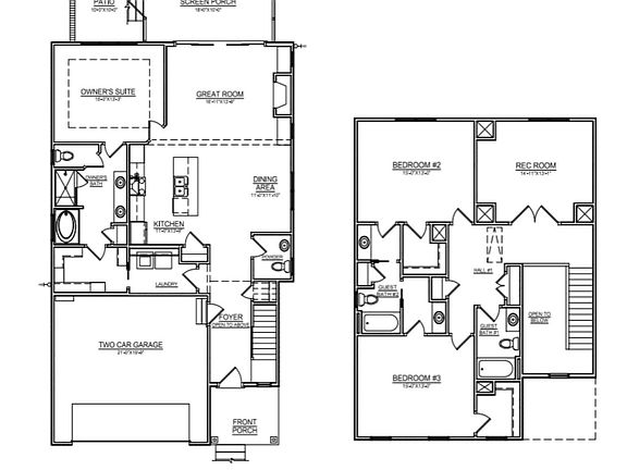 The Compass Plan from Legacy Homes by Bill Clark is a 2331 sq. ft. two story home with 3 bedrooms and 3.5 bathrooms. The kitchen, dining area, great room and Owners Suite grace the 1st floor. Upstairs you will find two additional bedrooms with two full bathrooms and a Recreation Room. Upgrades include a Chef's Kitchen with gas range and 42'' upper cabinets. An 8' center meet slider, fireplace with shiplap, marble surround and low open shelving are focal points in the great room. Wood treads lead upstairs where French doors open to the recreation room. Craftsman trim package, a 5'' cove crown in main living area and owners bedroom. White wood shelving in owners closet, pantry and laundry room. Upgraded countertops and tile throughout.