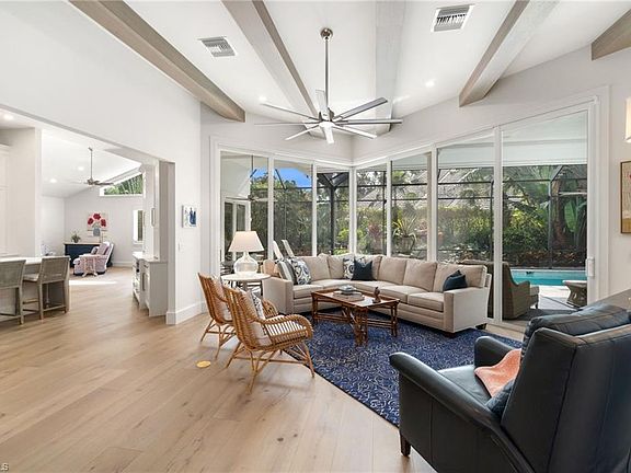 Come home to this beautifully remodeled Southern-exposure residence, perfectly located on a quiet cul-de-sac just steps from Oakmont Lake and the walking path. With nearly 3,000 sq. ft. under air, this four-bedroom, three-bath home offers an expansive split floor plan designed for both comfort and entertaining. The chef’s kitchen features a custom pewter hood, quartz countertops, solid wood cabinetry, two refrigerator drawers and top-of-the-line appliances, including a Sub-Zero refrigerator and Wolf gas range. Flowing seamlessly into both the family and living rooms, the home opens to a generous screened lanai with a large pool, covered dining and lounging areas, and plenty of space for sunbathing. Additional upgrades include all new hurricane-impact resistant windows and doors, wood flooring throughout, 2022 roof, 2022 & 2023 air conditioners, 2023 garage door, 2023 pool heater, all new plumbing installed in 2022, a whole-house generator with a designated 500-gallon propane tank, a climate-controlled garage with EV charger and a dedicated dog run for your four-legged family members. Pelican Bay residents can enjoy access to two private beach clubs, where beachfront dining is offered along with complimentary beach chairs and umbrellas to make for a seamless day on the gulf. The community’s resort-style amenities include tennis and pickleball courts, kayaking, and an extensive and vibrant fitness and community center. Centrally located in Naples and steps from world class dining and shopping as well as the Artis Performing Arts Center and Baker Museum, this move-in-ready home combines thoughtful design with peace of mind, offering the ultimate Pelican Bay lifestyle for all enthusiasts.
