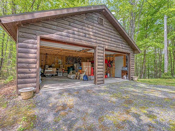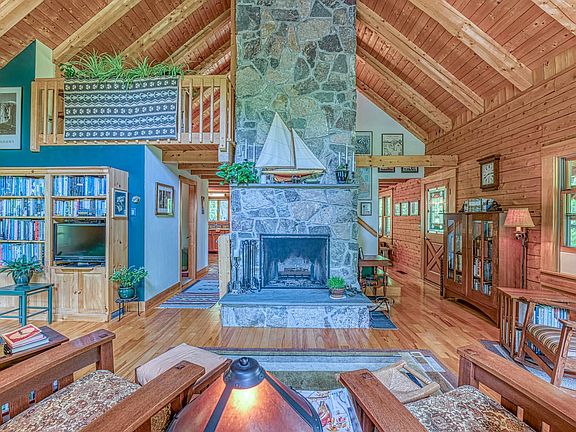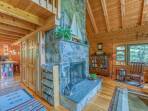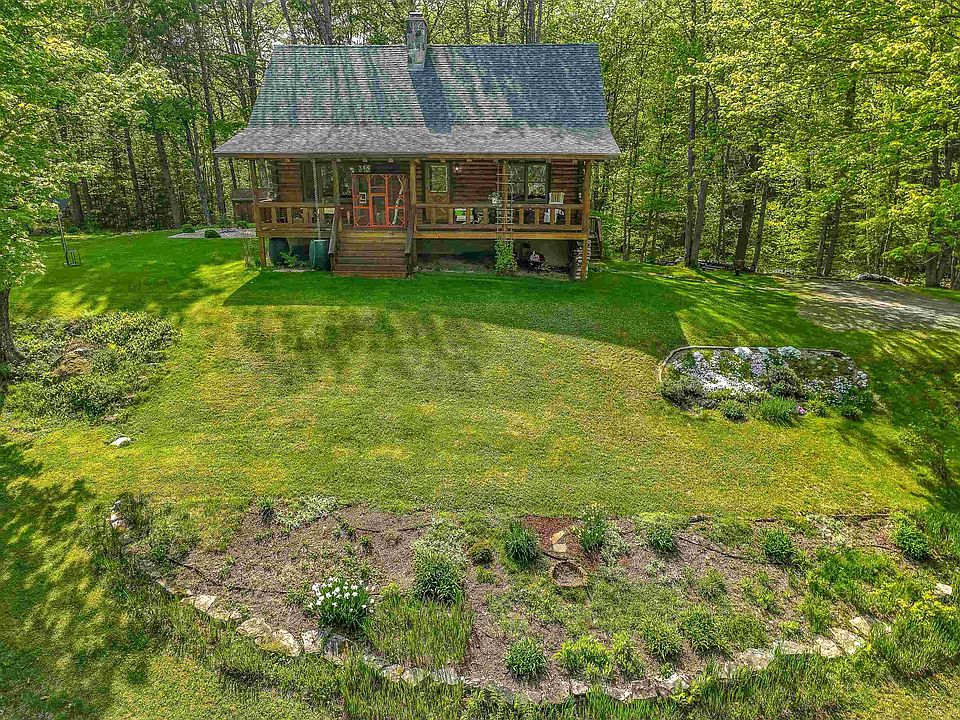 Nestled on a picturesque knoll within the enchanting mountains of Northwestern New Hampshire, this meticulously maintained log home offers a harmonious blend of rustic charm and natural beauty. Surrounded by lush woodlands, this 28 ac.property boasts serene water features and small ponds on its eastern side, creating a haven for indigenous flora and fauna. Delight in the symphony of melodies from nature's orchestra while savoring your morning coffee on the covered front porch, a tranquil ritual that perfectly captures the essence of this idyllic setting. The owners' care is evident in the exquisitely manicured gardens, which embrace the home with a vibrant array of both annual and perennial blooms. Step inside to discover an inviting living space accentuated by an artfully crafted fieldstone fireplace, serving as the heart of the home. The open concept design seamlessly integrates a spacious living room adorned with built-in bookshelves, inviting you to peruse the latest Audubon publications in perfect harmony with your surroundings. The expertly hewn fir beams, interconnected through traditional joinery techniques, lend an air of timeless elegance to the residence. Ascend to the second floor, where the primary bedroom commands a pseudo loft, encompassing the entire level. The basement offers flexible space for expansion. The charming towns of Littleton and Franconia are within easy reach.