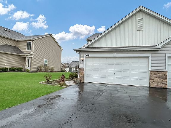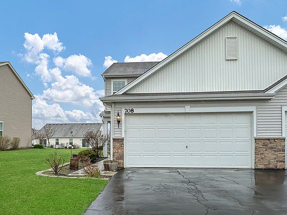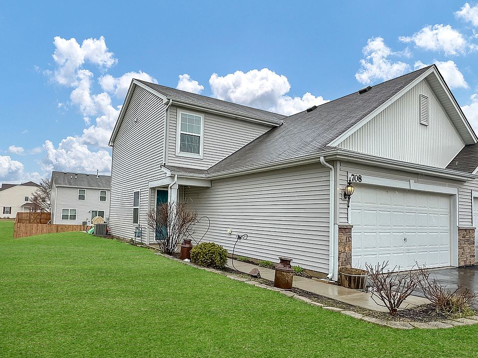 Welcome home! This newer duplex showcases a spacious open concept, luxury vinyl plank flooring and tons of natural light. The kitchen boasts ample cabinetry, generous counter space, a convenient breakfast island, a newer stainless steel refrigerator and newer microwave. Adjacent, the dining area provides the perfect setting to gather and entertain. The expansive living area offers versatility in creating your ideal living space. Upstairs, three generously sized bedrooms await, complete with ample closet space, a full bath, and the added convenience of second-floor laundry. Outside, the large yard features a partial privacy fence and a newer large concrete patio ideal for outdoor entertaining. Additional features include a 2-car garage (new garage door motor), expansive attic storage, a spacious driveway, and a large lot, all nestled within a desirable neighborhood with NO monthly association fees! Conveniently located just minutes from downtown Hampshire, highly desired schools, I-90, shopping, restaurants, and community parks, this home offers the perfect blend of convenience and comfort. Whether you're seeking your forever home or an investment opportunity, this is a must-see property!