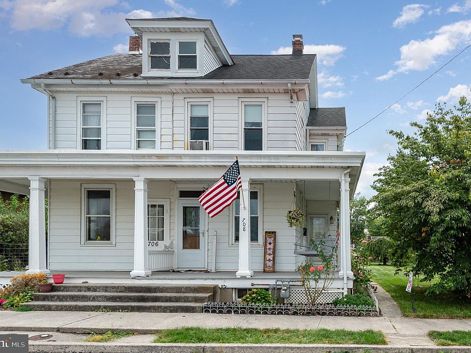 Semi-Detached Home with Versatile Space! This 3-bedroom, 1.5-bathroom semi-detached home offers a great layout with versatile living spaces. A wrap-around covered front porch greets you upon arrival. A spacious dining room with large windows, a living room with ceiling fan and wood laminate flooring, and a kitchen ready with island seating are just a few of the features you'll love. First floor laundry room with half bath has built-in cabinets and tile backsplash. Spacious mudroom with built-in bench perfect for your entry needs. Upstairs, you'll find three bedrooms , a walk-out covered balcony great to enjoy a cup of coffee, and a full bathroom with tiled shower walls and granite sink top. Plus head up to a finished third floor providing more finished space for a variety of uses, possibly an office or game room, you decide. Outside, the beautifully landscaped backyard includes a patio area with retractable awning, shed, and off-street private parking. Full basement for storage and natural gas heat (furnace 2020), many replaced windows, new exterior doors. If you're looking for a home that offers something a little different, this is it!