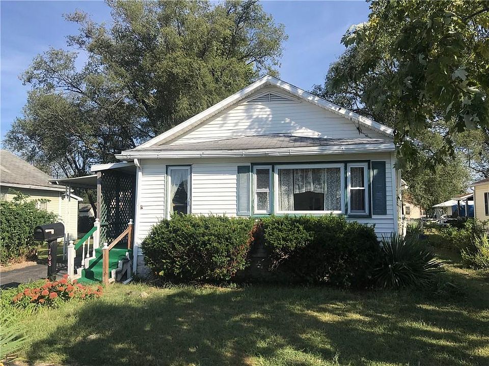 2 Bedroom bungalow on fenced in town lot. Large detached 2 car garage with extra storage room. Access to the garage through the alleyway. Parts of roof (shingles and sheeting) have been replaced. Mostly new vinyl windows. 1 !/2 baths. There is a laundry hookup on the main level.