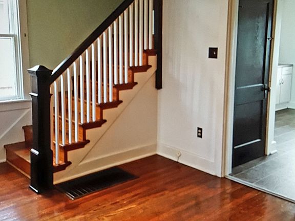 Sold Attractive 1392 sq ft, 2 story brick, asphalt and vinyl siding Cape Cod home. This home is larger than it looks. 4 BR, one of first floor, and three on second floor. Dining room, cozy fire place in living room, all having refinished original hardwood floors. First floor updated full bath. New solid oak kitchen cabinets, new vinyl flooring in kitchen and bathroom, full basement with laundry area. Hook up in basement for gas or electric clothes dryer. New 90+ natural gas forced hot air furnace, updated electric hot water heater, new circuit breaker box, and new wiring in walls to all receptacles. Hook up in kitchen for gas or electric range. Plenty of closets. Side attic access. New 50 year main house roof installed May of 2006. Large front and rear porches. Home exterior has replaced rain gutters. All wood surfaces on exterior of home covered with aluminum and vinyl. Detached 18'x10' vinyl siding garage with new overhead door, updated wiring, and exterior flood lights. Rear public alley access, off street parking for two vehicles, and on street parking. Nicely landscaped yard, lot size 40'x150'.