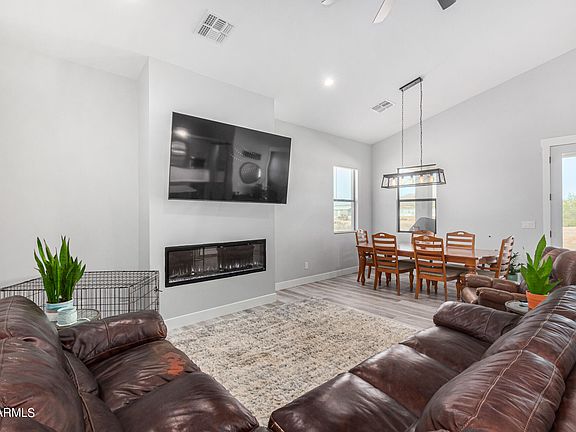 MOUNTAIN VIEWS! This gorgeous home reveals a thoughtfully designed 3 beds, 2.5 baths, & a 2-car garage. Inside, you'll find vaulted ceilings, complemented w/wood-look flooring, stylish light fixtures, ceiling fans, & neutral palette that creates an inviting ambiance. Impressive open floor plan, complete w/a wall-mounted fireplace, enhances space & flow, perfect for entertaining. Well-appointed kitchen boasts abundant cabinets & cupboards topped w/crown molding, SS appliances, a prep island w/a breakfast bar, quartz counters, & a walk-in pantry. Serene main retreat offers plush carpet, a cozy fireplace, & a trending barn door to the ensuite comprised of dual sinks, jetted tub, & a large walk-in closet. For added versatility, this gem includes a flexible den/office & a spacious bonus room! Massive backyard w/a covered patio has tons of room for a pool & your landscape ideas. Look no further! Make it yours now!