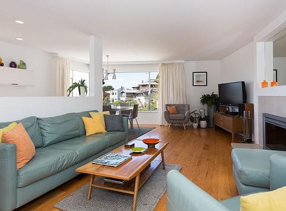 Level-in bright & airy mid century with great Bay views. Tastefully updated. Sunny open layout. 2 beds/2 baths on main level. Hdwd flrs, fireplace, deck. One bed/bath with deck lower level. 2 car attached garage. Easy living!