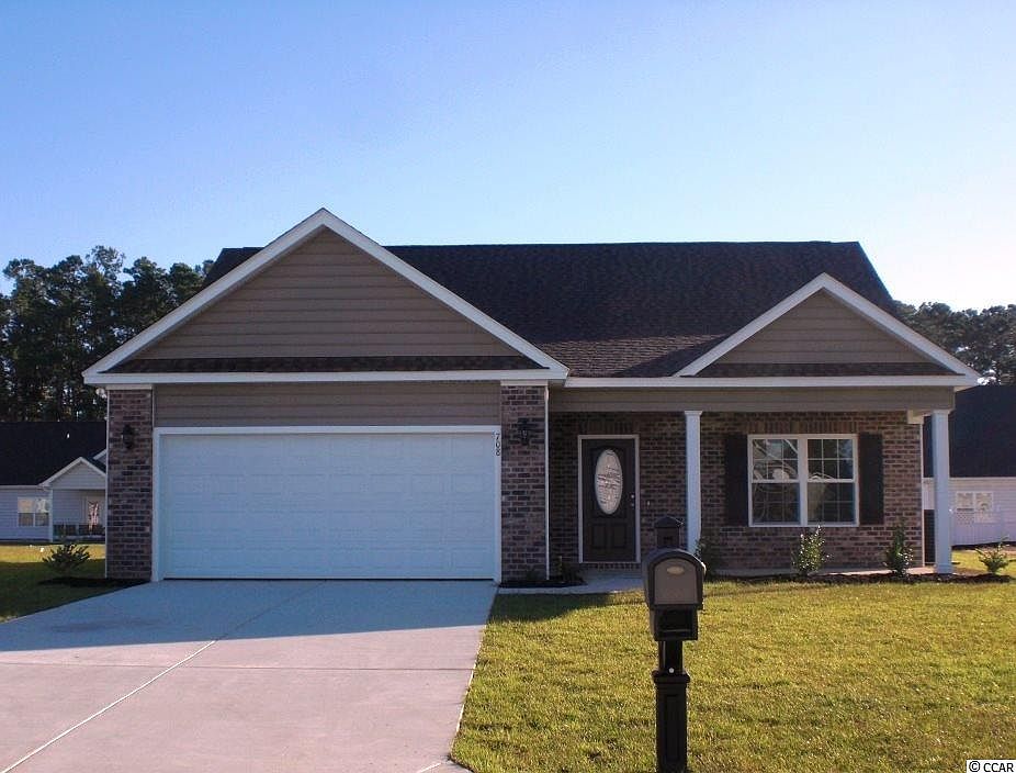 One of Beverly Homes Premier Communities in the Conway area,The BUSBEE is a 3 bedroom / 2 bath with open floor plan. Great closet space. Breakfast bar and Granite counter top. Hardwood floor in Foyer and Great room. Covered Front and Screened Rear Porch, Stainless Steel kitchen appliances include range,microwave and dishwasher. Kitchen includes a large eating area, a pantry and custom wood cabinets. Private master suite features a walk-in shower, dual sink vanity, linen closet, Large walk-in closets, 20' x 21' garage. Yard is sodded up to 14 Pallets, 50 year warranty on roof, brick accents and smooth ceilings. Builder will customize / personalize. All of our New Homes in Tanglewood are built with a "Maintenance Free" Lifestyle in Mind. Tranquil neighborhood a few minutes from downtown Conway, only 30 minutes to the beach/Myrtle Beach. Easy access to to all major roads, shopping, dining, all amenities. Call or visit our sales office today.