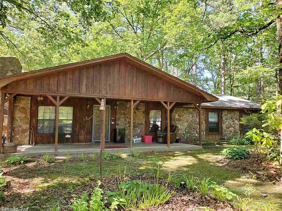 WELCOME HOME AND RELAX-Peaceful and private setting with so much to offer! 3 BR, 2 bath home with some updates including granite countertops, new stove, kitchen sink and faucet, large walk in shower. Naturalized landscape with lovely flowering bushes, goldfish pond, gazebo, 3 stall pole shed, small barn, RV cover, and approx. 638 square foot shop/storage built on to back of house plus covered front porch. Beautiful clearing in back with backdrop of gorgeous trees. Agents see remarks.