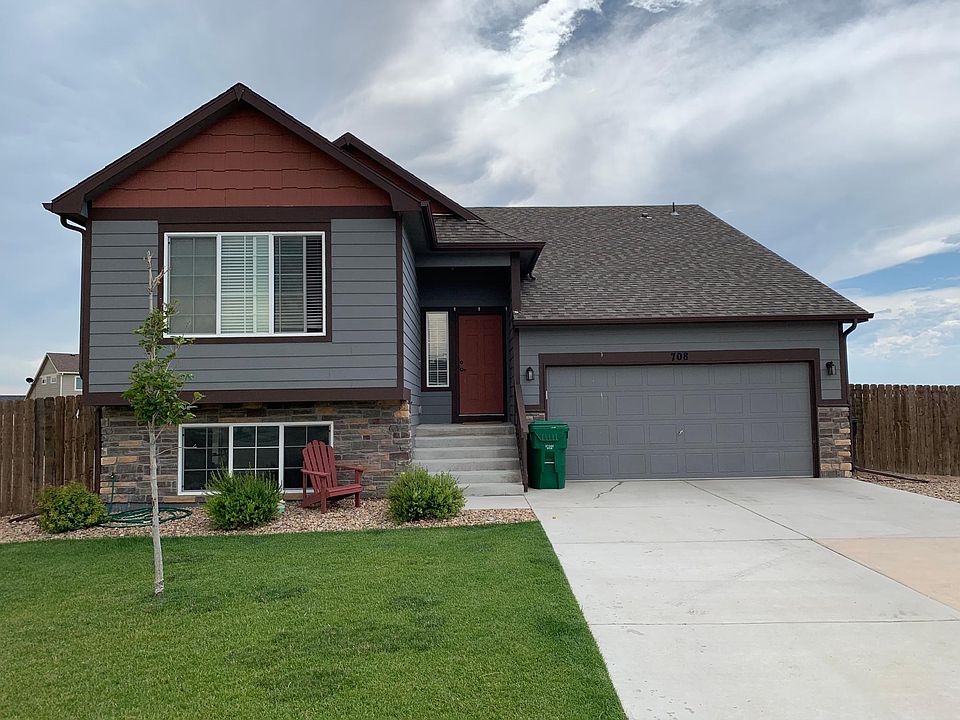 Available August 10th AUGUST RENT FREE Dog negotiable. Sorry No Cats This is a very nice 3 bed 2.5 bath home. Some of the features include a tandem 2 car garage, beautiful landscaping, central a/c, vaulted ceilings, walk in closets, very large cement patio, backs up to open space, great views of the front range mountains, and much more. Must See! For more information or to schedule a showing call Emily at Stegner Property Management $55.00 Application fee per person.