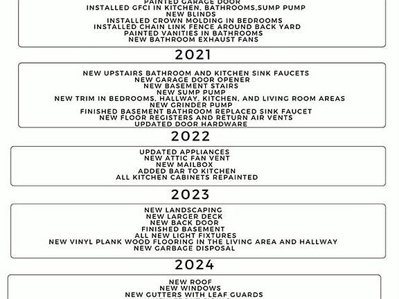 Recent updates also include a freshly painted garage door in 2023 and a new garage door opener installed in 2021, enhancing both functionality and aesthetics.