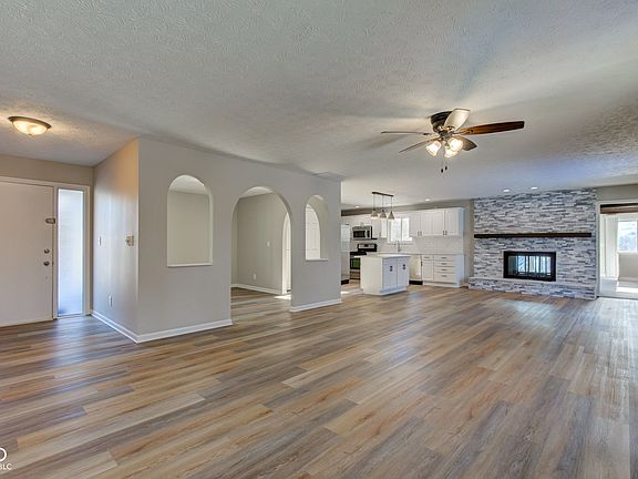 Your search is over! Center Grove schools, no HOA, with updates gallore! New roof, new bathroom countertops, new paint and flooring, some new windows,. Walk into your open concept living/dining/kitchen area flooded with natural light. A porch wraps around the entire rear and side of the house. Your master bedroom has it's own fireplace and it's own patio, with a newly poured slab. Relax in your garden tub OR your walk in shower stall. A walk in closet completes the master suite experience! The double sided fireplace separates the oversized living and dining rooms! The partial basement is fully finished with a bedroom, bathroom, and a bonus room. Tons of storage options between the oversized garage, bonus room, outside storage barn, and walk in closets! Schedule a showing today!