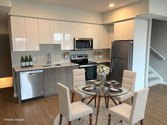 Welcome to Marquis Modern Towns, North Guelph's newest community in a private enclave within walking distance of Riverside and Exhibition Parks. This unit comes with upgraded standard luxury finishes, including maintenance free vinyl plank flooring, Barzotti Eurochoice cabinetry in the kitchen and bathrooms, a 4 piece stainless steel kitchen appliance package, quartz countertops, ceramic wall tiled shower and a full sized stackable front load washer / dryer. This unit is located on the 2nd and 3rd floor with tons of morning sun featuring 2 balconies, one surface parking and ample visitor parking. Tenant pays all utilities.