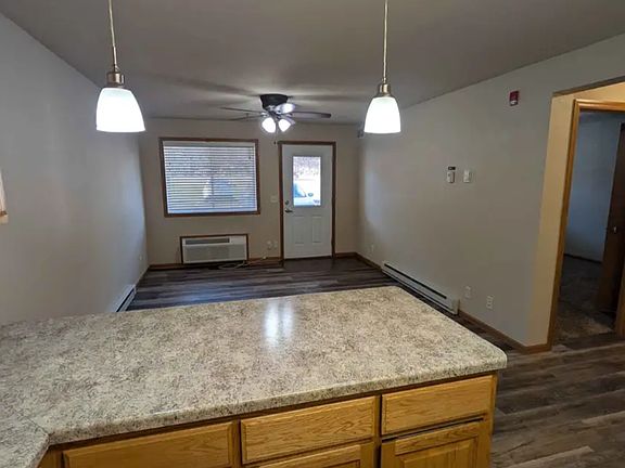 One bed, one bath apartment available now. No dogs, no section 8, no smoking. Easy to access, ground floor one bedroom apartment near Kwik Trip in Minnesota City. There are no steps to access the apartment, trash, mail, or laundry. Parking is directly in front of your unit and laundry is next door. The unit is adequately sized, with ample storage in the kitchen, a walk-in closet in the bedroom, and has a large bathroom. The kitchen has an eat at peninsula for bar stools to serve as the eating area. All units have their own water heater, AC units in the living room and bedroom, as well as electric heat in the living room, bedroom, and bathroom. The parking lot is lit and has 24/7 video surveillance. The unit is $750 for a lease through 5.25.25, or $695 for a lease through 5.25.26. We are not offering a 12 month lease at this time due to the time of year. Rent includes water, sewer, and trash. Tenant responsible for internet and electricity, which is estimated at $65-$95/month. Owner pays water/sewer and trash. Tenant pays electric and internet. Electricity is generally between $60-$95 as this unit only has one wall that is not protected by an interior wall. Smokers need not apply. One cat is allowed with additional deposit and $30/month rent. This building is well sound proofed, and the other tenants are quiet. Photos are of similar units, pictures of this unit will be available soon. Contact for showing.