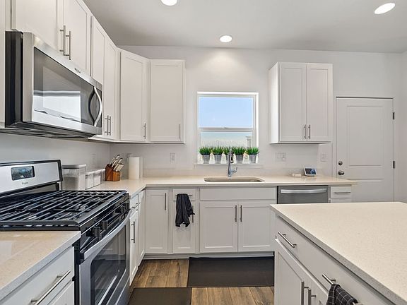 Come take a tour of this beautiful end unit. The white cabinets and quartz countertops throughout provide a stylish interior. Includes a kitchen island and open concept. Lots of windows provide nice natural lighting and the back patio isn't attached to another house. High ceilings help expand the space. The carpet shown in the photos are being replaced so you'll have fresh new flooring on the stairs and second floor. There's also an unfinished basement. Community pool close by.