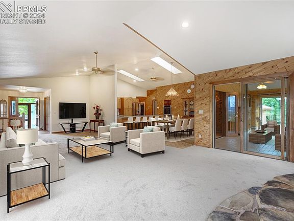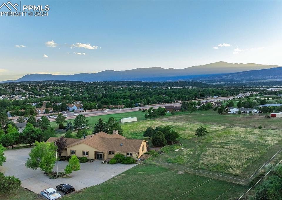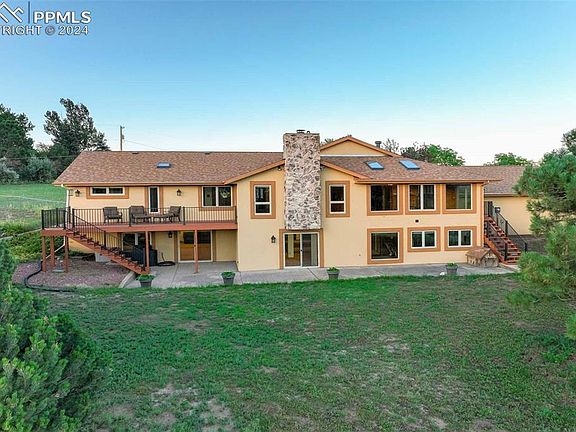 Discover Your Dream Oasis: Luxury Meets Serenity in Columbine Equestrian Estates Escape to unparalleled tranquility with this stunning property in the semi-private Columbine Equestrian Estates. Set on 2.7 acres, this home offers breathtaking views of Pikes Peak and the majestic Front Range, creating a picturesque backdrop for everyday life. Boasting 5,700 square feet of meticulously designed living space, including a fully finished basement, this residence provides ample room for family and hobbies. The property features 2 acres of secure, fenced-in space, ideal for dogs, horses, or children to enjoy safely and freely. Gardening enthusiasts will appreciate the large greenhouse with a built-in drip system and raised beds filled with rich, organic soil. A spacious workshop, equipped with built-in cabinets and a 4x15' worktable, awaits those who love to tinker. The oversized garage accommodates three cars and includes built-in shelves, a workbench, and smart Wi-Fi door openers. The home’s bright and airy interior is enhanced by skylights, which fill the space with natural light. Relax in the luxurious spa, complete with a steam sauna and a jacuzzi tub surrounded by elegant redwood paneling. Recent upgrades include new stucco siding, double-pane windows, outdoor lighting, and a 30-year roof, ensuring both efficiency and beauty. Inside, enjoy a freshly updated kitchen with Corian counters, a gas stove, new appliances, and custom oak cabinets. The home also features a remodeled guest bath, a versatile laundry/pantry room with custom cabinets, and solid-core oak doors throughout. Year-round comfort is provided by dual high-volume whole-house fans with evaporative cooling. Outside, mature trees and new sprinkler systems complement this beautiful estate. This property isn’t just a home—it’s a lifestyle. Schedule your viewing today to experience luxury living like never before.