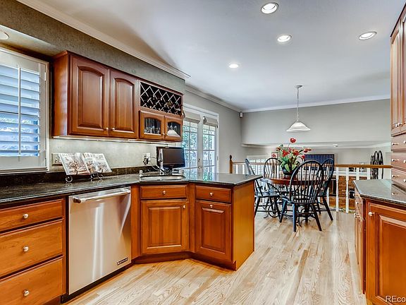 Beautiful 3 bedroom tri-level home in highly sought after Homestead in the Willows. The exterior brick is from downtown Denver and adds to the impressive curb appeal. Hardwood floors, plantation shutters andlight dimmers throughout the home. Entertain in your formal living room with crown molding and french doors to the foyer. Enjoy holiday meals in the formal dining room with crown molding just off the kitchen with cherry cabinets, granite countertops, JennAir gas cooktop, stainless steel appliances, under cabinet lighting and an 11 x 8 eat-in area. The spacious lower level family room, with impressive brick gas fireplace and full mantle is perfect for relaxation. Retreat to the finished basement, perfect for playroom, man-cave, pool or ping pong with egress window and additional finished storage space. The upper level has the large master bedroom with double closets and tiled 3/4 bath. Two additional bedrooms both have can lighting. All bedrooms have beautiful hardwood floors! The upper level full bath has granite countertop, jetted tub and tile floors. For additional storage there is a large walkin hallway closet for linens, clothing and misc. storage. If outdoor entertaining is your thing you have hit the jackpot! Head through the french doors off the kitchen to the covered patio with adjoining deck and beautifully manicured backyard with a concrete basketball court, kid's playhouse and plenty of room for outdoor storage or enjoy quiet time on the covered front porch. Walk to 3 pools, tennis courts and Homestead Elementary! Homes do not come on the market in Homestead very often so come on out and see for yourself!!