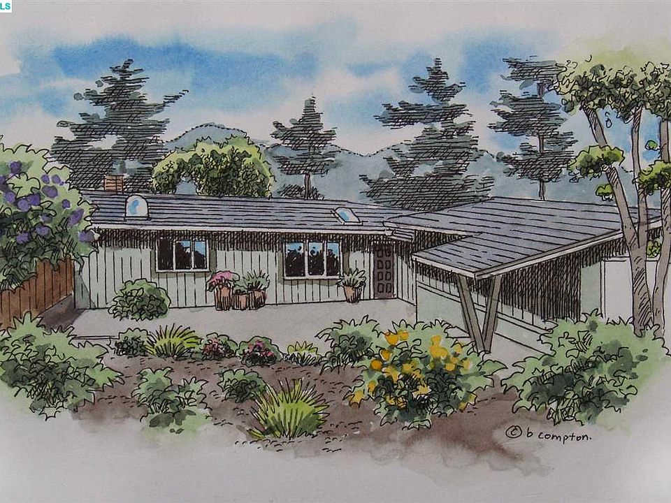 Delightful possibilities! Level into this bright and airy mid-century with vaulted ceiling. Floor-to-ceiling windows and slider open to a deck over pretty wooded canyon. Galley kitchen looks out at front patio and garden. Downstairs family room and third bath with separate entrance option. Make it your own!