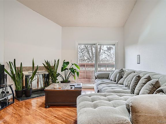 Professional photos will be uploaded Thursday. Close to parks & Edgewater Public Market! This unit has been well cared for and features vaulted ceilings, a wood-burning fireplace, built in speakers, a balcony with Denver views, and a reserved parking space. All the larger more costly appliances are newer including furnace purchased in 2016, water heater purchased in 2019, washer/dryer purchased in 2020, new paint, and new carpet. A brand-new AC will be installed before closing. HOA covers insurance, grounds maintenance, structure maintenance, snow removal, trash, and water. This starter condo is waiting for you to claim it and add your own personal touches. Seller needs up to 60 days PCOA to find replacement home.