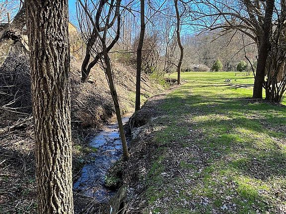 At the edge of ancient Bearwallow Mountain, they’re is a unique, well loved bungalow on 5.86 acres of old forest & level green land. The 1940’s Bungalow is charming and intimate, with a tongue in groove ceiling, alcove, and wood burning fireplace for cozy evenings with a great book. The bright kitchen boasts a large pantry & utility room w/washer/dryer hookups, and a mysterious “indoor” cave. The sunporch, with double French doors, serves as a bridge to an extraordinary yard, with mature trees and vintage stonework all around. Create a dream garden along the babbling creek, hang a hammock between the large trees, grill on the patio, and romp on the expansive green lawn. It’s the perfect, private space for solitude or entertaining. Much of Bearwallow Mountain is renowned for incredible hiking, and is conserved land. 10 minutes to Lake Lure and less than 25 minutes to Asheville. This rare find would make a fabulous vacation rental or second home! Listen! The mountains are calling!