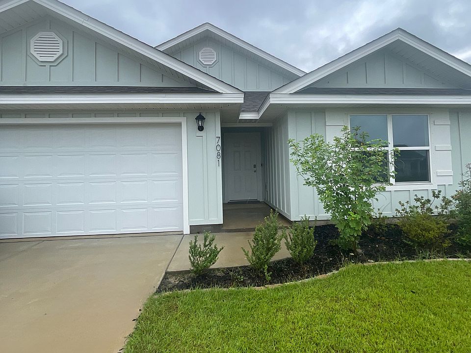 Welcome to Raley Farms! This beautifully designed 4-bedroom, 2-bathroom home offers a modern open and split floor plan, perfect for comfortable living. Built to GOLD FORTIFIED standards. Inside, you'll find luxury vinyl plank flooring throughout, adding a touch of elegance. The kitchen is a chef's delight with a large island, Moen faucets, a garbage disposal, stainless steel appliances including a dishwasher, over-the-range microwave, and a smooth top electric range.