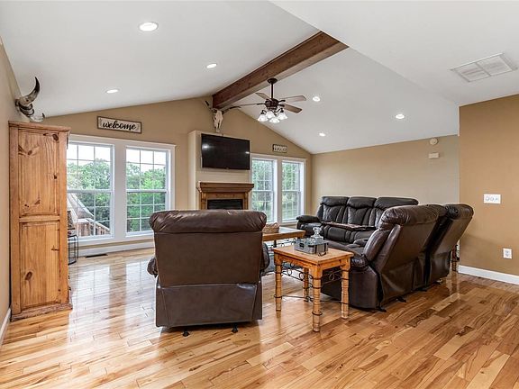 This could be your forever home! This quality brick home sits on 42 acres of gorgeous Missouri farm land. Gently rolling land ranges from wooded area for hunting, and pasture for the animals to graze. Property features some fencing in place, above ground pool with decking, a shop with 1/2 bathroom, dog kennels, and lean to off the back. The high quality interior is also something to talk about. The large chef's kitchen features custom cabinetry, center island, stainless appliances, and an amazing view. Common living areas boast of beautiful hardwood flooring. Living room features vaulted ceiling, gas fireplace, and tons of natural lighting. Home also has a flex room with french doors that would make a great office or formal dining room. Large Master suite has full bathroom and walk in closet. You won't want to miss this great opportunity!