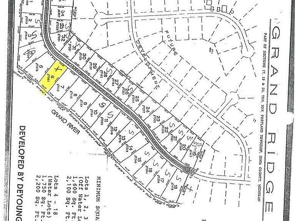 A serene waterfront executive home site lot for sale in Grand Ridge Estates! 125 feet of beautiful Grand River frontage. Just 5 minutes to downtown Portland and 6 minutes to I 96. Close to Portland River Trial. Award wining Portland schools. Association fees 300/year. Choose your own builder and build your dream home with stunning views.
