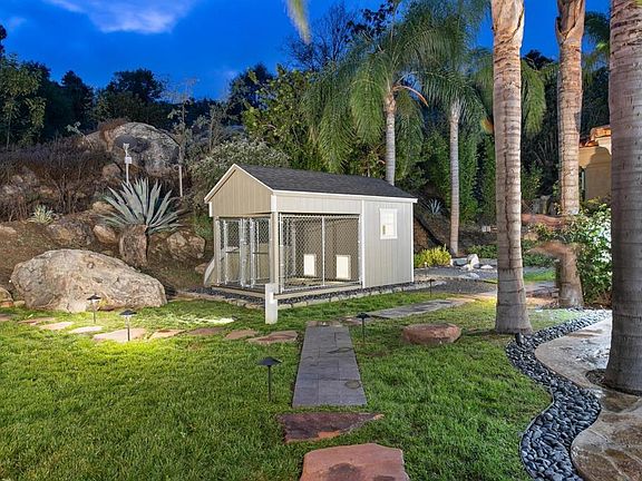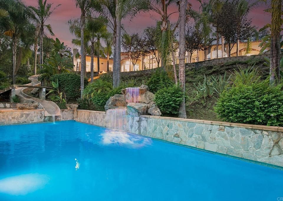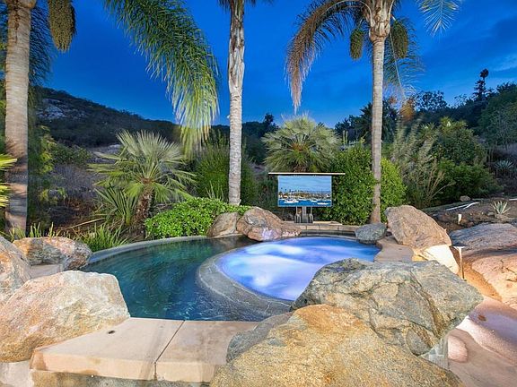 The Eagle’s Nest is comprised of an incredible property on 17+ acres nestled on it’s own side of the mountain with incredible views, 15 miles horse trails, a year round creek, 40 oak trees all within it’s own enclosed private gates. Property is perched high on the hill overlooking the rest of Bonsall which includes the famous San Luis Rey Training Center. The property was once owned by the famous wrestler Bill Goldberg. The property has been completely renovated to the highest level of perfection. The single level main house has 4630sf, brand new chef’s dream kitchen with pantry, 4bed/ 4 bath, plus dedicated office, 3-car garage ranch style home along with elevated spa with it’s own hiding TV that comes up with a push of a button. When your too hot from the spa just jump on the slide which will take you down to lower level huge gorgeous waterfall pool, enclosed dog hotels, basketball half court, small livestock enclosures, many different fruit trees all located along a private road.