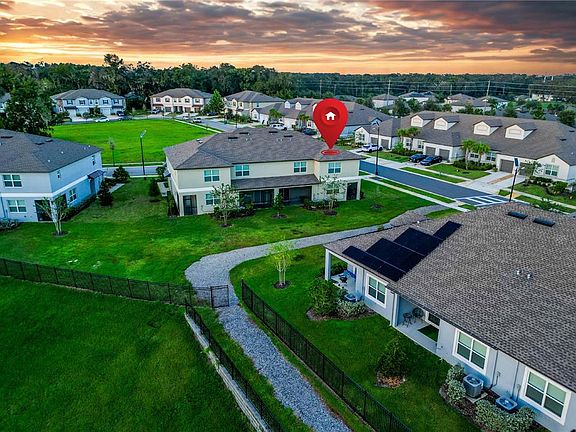 Welcome to Abbott Square in Zephyrhills, where this 3-bedroom, 2-bath townhome sits in the only gated section of the community. To start, the sellers are offering a $5,000 credit to the buyer with a full asking price offer! Positioned on a rare corner lot, this end unit stands out with direct access to the community trail right beyond the backyard, giving you an easy path for walks, runs, or simply enjoying the outdoors. Inside, the home features accent walls and a custom-built electric fireplace that adds a focal point to the living area. The kitchen is finished with granite countertops and white shaker cabinets, a look that carries into the bathrooms with matching granite counters. All appliances are included with the sale, making this home truly move-in ready. Every detail reflects how well this property has been cared for and maintained. A one-car garage adds everyday function, while right in front of the home you’ll find a large open park space that expands the feel of the property and gives guests plenty of room to enjoy. Additional street parking makes it simple to host without worry. Beyond the front door, Abbott Square offers a full range of community amenities including a resort-style pool, clubhouse, fitness center, playgrounds, and parks that tie the neighborhood together. The HOA also covers all exterior maintenance, including the roof, lawn care, and landscaping, and provides 1.56Gb internet along with basic cable TV—making life here as easy as it is enjoyable. On the gated side of Abbott Square, opportunities like this corner-lot end unit don’t come around often. The setting, the finishes, and the access all line up to make this townhome one of the most compelling homes in the community.