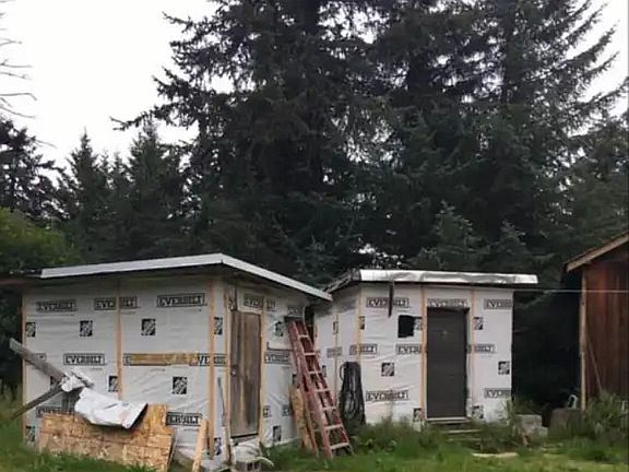 Unfinished ,1536 sq. ft.,2 story home for sale. Located on bluff side of Sterling Hwy., between Ninilchik and Anchor Point, Alaska. Sitting on 1.13 beautiful acres with a circle drive and 3 out buildings to include a shower house and 2 guest cabins; 1 sleeps 4 and 1 sleeps 2. Fish cleaning station. Electricity and well installed, septic and heat not yet installed. House: Downstairs finished; 1 bedroom, 1 bathroom, kitchen, living/dining area and laundry room. Upstairs is framed for 2 bedrooms and a bathroom. Please call Rick 907-978-1991 or text 907-378-8096. You can also message to schedule a date in June for showing. Serious inquiries only please.