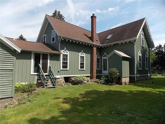 You won't want to pass up this opportunity to own a piece of history. This magnificent Carpenter Gothic Revival Farmhouse was completely rehabbed in 1990. Enjoy this country setting with 3 acres of land that includes a 2800 sq ft barn allowing for ample storage. Gorgeous hardwood flooring featuring grained wood moldings. Enjoy cooking meals in the bright updated kitchen that includes a center island and all appliances stay! Stunning gardens throughout property and a private deck! Tear-off roof (2007) Driveway (2010)