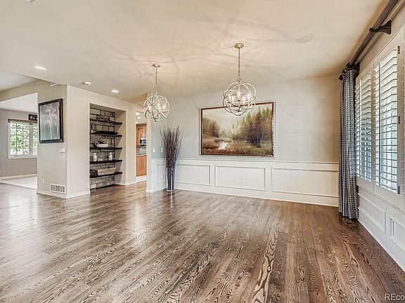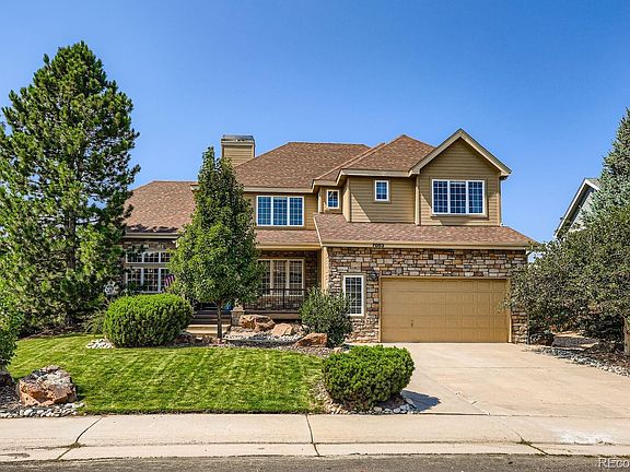 This well-maintained home in the heart of the Castle Pines community is priced to sell! Offering exceptional value, this home embodies the essence of Colorado beauty. With stunning mountain views overlooking The Ridge at Castle Pines golf course, the amenities here are truly second to none. The open floor plan, with a unique two-sided fireplace and huge kitchen island, seamlessly accommodates both quiet evenings and lively gatherings. Step onto the expansive, newly updated Trex deck, where stunning sunsets serve as the perfect backdrop for entertaining. Unwind and relax under the stars in the built-in hot tub. The upper level boasts four well-appointed bedrooms, two connected by a double sink vanity shared bathroom, and a remarkable primary suite—a private haven with a 5-piece bath with soaking tub, cozy fireplace, two large closets, and a secluded deck offering breathtaking Colorado sunset views. The finished basement is crafted for both entertainment and relaxation, featuring a versatile craft/toy room, an impressive theater with a large viewing screen, a bonus room perfect for gaming, and a private guest suite with its own bath. Elegant plantation shutters and detailed wainscoting add to the timeless character of this one-of-a-kind residence. Beyond the home itself, Castle Pines is one of the most sought-after communities in the South Denver metro area, offering an unparalleled lifestyle. Don’t miss the chance to make this exceptional property your own!