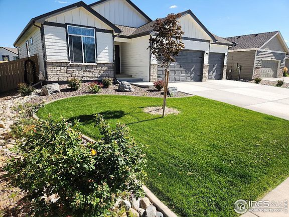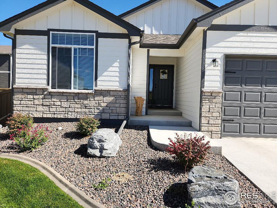 Seller will pay $10,000 in concessions for closing cost and/or buy down interest rate.Do not miss out on this amazing home with lots of upgrades! Open floor plan home with 3 bedrooms 2 baths,upgraded additional hard wood flooring through out the home,has recessed/dimmable lighting throughout the home,large decorative boulders and is pre-wired for security cameras. Kitchen has under cab lighting, pantry and gas range/oven. Finished garage that is insulated and painted, has extra lighting, ceiling storage, mounted heater, EV charger pre-wired for electric vehicle and extra circuits. Laundry room has barn door. Extra large concrete pad, gas stub outside for grill, window well covers, concrete curbing, upgraded landscaping, panel conduit to basement, A/C and has a Smart sprinkler system and doorbell camera.