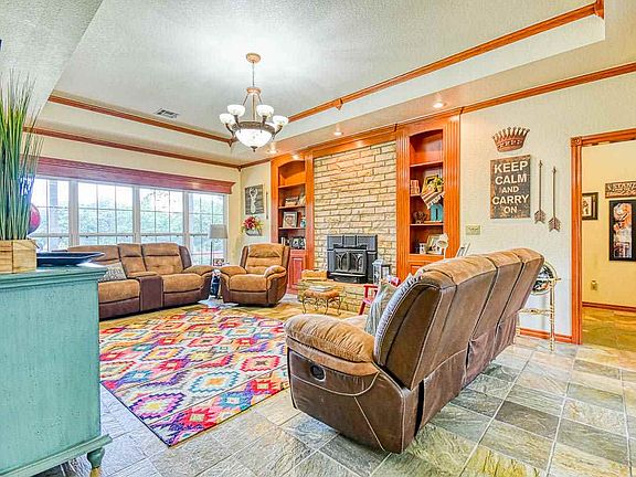 Here is your unique opportunity to acquire a truly one of a kind property. Especially now as people are looking to move from the big cities...this 40 acre ranch/home will open your eyes to the goodness of God. Winding tree lined drive up to the 2308 square foot brick home will take your breath away....and that's not even the best part. With its park like setting, beautiful brick home,(hidden from the road) barns, trails and Margaritaville in your own back yard you will never need to leave home for a retreat.With such a private and peaceful setting you'd never realize you are only 42 miles from Norman; 32 miles from Ardmore and 130 miles from Dallas. This home is 15 minutes from 5 different school districts. There is no shortage of space for your family and friends. The gourmet kitchen with custom cabinetry has upgraded appliances; granite and nice size pantry. There is a breakfast nook in the kitchen with bay window overlooking lush landscaped back yard and pool. The kitchen bar seats 4. The floor to ceiling window covered family room provide views you will never tire of. This room is anchored by a beautiful rock fireplace and custom shelf built-ins on each side. The spacious family living area is designed for entertaining large groups, but is cozy enough for small groups as well. On the other side of the kitchen is a large formal dining room with custom built in China Hutch. The millwork alone in this house is amazing...with extra special details and crown molding throughout. The Master Bedroom alone is so large it needs it's own zip code. Office space as you enter...his and her walk-in closets and the on suite has a shower and soaker tub. There two other roomy bedrooms opposite the master with a full bath in between. There is a guest bath and nice laundry with custom cabinetry off the entry hall.As beautiful as the house is, you will most likely find yourself spending a lot of quality family time outdoors. Custom in-ground pool(has many extra features and can be heated)and hot tub are the star of the show outdoors....not to mention the pool cabana and a large rock outdoor fireplace for the cool fall evenings ahead are the envy of the neighborhood. Also...just outside the home is a oversized 3 car garage... a newer cellar; shop building; paddock; and large hay barn. There is also a shop/game room with a pool table...this could be converted easily to an efficiency living quarters. The yard and flower beds all have sprinkler systems...so no more dragging the sprinkler and the hose around. (home has water softener) If that is not enough...hike or ride on the trails of the lush acreage to the pond on the backside for a little fishing. This is a great property for those looking for "Self Sustainability". Still looking for entertainment....Arbuckle Lake, Turner Falls and our National Park is just 9 miles to the south.This place is truly a one of a kind...the home and barns were all built to the highest standards.