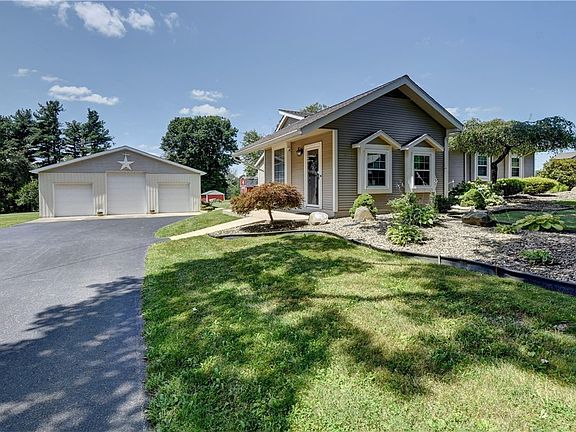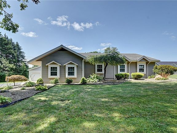 This Precious Ranch-Style Home will Delight many an it sits on almost 2.5 Acres!! 3 Bedrooms with space for more. Updated Kitchen and Appliances provides plenty of Cabinetry for storage and Granite Counter Tops spread out for Buffet Style Dining. Enjoy a Meal with an Open View of the Large Kitchen. Laundry is accessed on the First Level, connected to a Full Bath and Open Mud Room. Two Suite Style Bedrooms allow ample Privacy with Full Baths. Primary Bedroom is absolutely enormous with Beautiful Wooded Cathedral Ceiling, Walk-in Closet and Bath with a Soaking Tub. Open Living Room with a Cathedral Ceiling, enfolds into the Finished portion of the Basement. Completed with a Walkout Entry. Enjoy the Convenience of a Half Circle Paved Drive. Six Car Garage, Tall enough to store a RV/Boat. Use this glorious space for Entertaining as it has Banquet area, Heated and Tile Flooring. 2 Extra Sheds/Barns on Property with a Gazebo out back to relax under. Take Pride in the Privacy of Owning almost 2.5 Beautiful Acres. Many, Many Updates and Special Features Here. Whole House Generator Hook-up, Reverse Osmosis Water Treatment System, finished basement and so much more... Come live the simple Life and Enjoy what Raccoon Rd has to offer. Just Minutes from Shopping, Dining and access to Freeways.