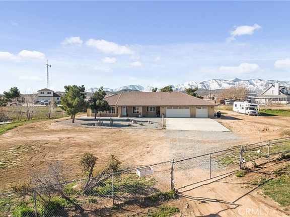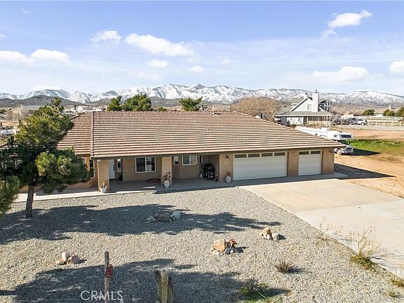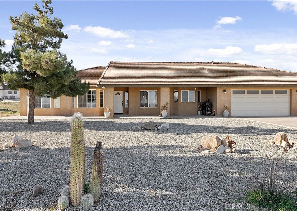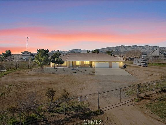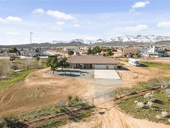 Beautiful Desert Oasis home nestled around panoramic views of mountain and desert landscapes. Single story boasting over 2300 sq ft of living space with 4 Bedrooms and 2 Bathrooms.. Enter into a open concept floorplan and enjoy a huge family room with high ceilings, recessed lighting ceiling fans, carpet and laminate wood flooring. Stay warm with a wood burning stove. The kitchen is adjoining and has tile counter tops, walk in pantry, stainless steel appliances and lots of cabinet space. The Master Bedroom is on one side of house and features a tile tub, seperate shower, dual sink vanity, ceiling fan , walk in closet and a double sliding door to your outside patio. On opposite side of house there are 3 additional Bedrooms and a spacious laundry room. The Bathroom is newly remodeled with al tiled decorative shower, modern vanity with sink and laminate flooring. The 3 car Garage is fully drywalled and has a pull down ladder into attic for storage space. Exiting the Family Room you will enter your Fully Fenced Block Wall Backyard Oasis.. There is a Saltwater Pool and Jacuzzi surrounded by plenty of stamped concrete, Enjoy your Covered Patio with plenty of space for entertaining and BBQING.The 2 Acre property is fully chain linked fenced in so you can park all your toys and Board all your favorite animals including your chickens to enjoy a spacious Chicken Coop. Dont miss out on this luxury country living llifestyle iwith a small town feeling.