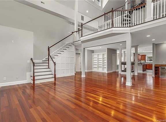 One of the prettiest homes in Tega Cay has finally hit the market! Custom built in the sought after executive neighborhood of the Anchorage was made to entertain & impress! You will be greeted by a beautiful wrap around rocking chair southern style porch. Enter a sun filled 2-story great room w/ brazilian cherry floors, built-ins, wet bar, plantation shutters & 4-sided gas log fireplace seen from every room. Spacious kitchen w/ center island & raised bar, granite ctrs, loads of cabinets, gas range, all stainless appls & dbl ovens which leads to a porch overlooking the backyard. Huge master suite on MAIN w/ updated bath & walk-in closet. Upper level has 2 bdrms with jack/jill bath & a 4th bdrm/bonus rm. All rooms are connected w/ a sitting area & 3rd level loft. Host your next get together in the lowest level of the home! Huge walk out basement w/ bar leads to an incredible outdoor living space w/inground pool, professional landscape & irrigation system. Truly a home no one will forget!