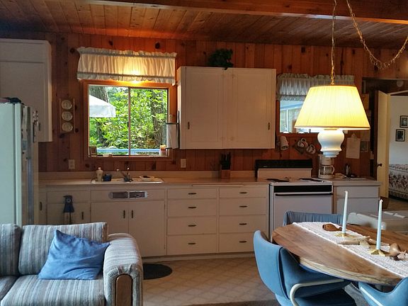 Great lake cabin priced at $249K has road and boat access! 3 Bedroom & 1 bath cabin with 784 Square feet. 2 tax lots totaling .70 acre! VIEWS! Lakefront! Boathouse! Expansive decking! PARKING!!! Newly installed propane stove & hot water heater. Location, location, location!