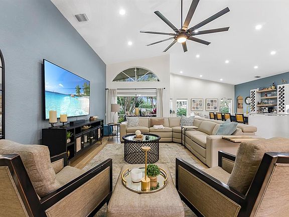 Welcome to this beautifully renovated 3-bedroom, 2.5-bathroom home in the exclusive 55+ subdivision of Lakeridge Falls inside the Westchester Golf community. Thoughtfully designed with both comfort and style in mind, this home features a beautiful open floor plan, soaring ceilings, spacious living areas, expansive windows that fill the space with natural light, and an impressive kitchen; ideal for entertaining! Step out onto the serene lanai, surrounded by lush greenery—perfect for peaceful mornings or relaxing evenings. This home offers the perfect blend of elegance, tranquility, and active living. NO MANADATORY MEMBERSHIPS REQUIRED!
