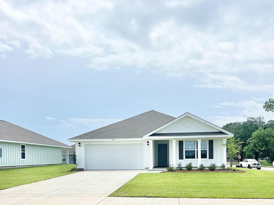Welcome to Raley Farms phase 2 conveniently located on County rd. 8, minutes away from white sandy beaches of Gulf Shores, great restaurants, and shopping. Community amenities include a zero-entry swimming pool overlooking a pond with large oak trees and beautiful scenery. The popular Ryder plan offers 4 bedrooms and 2 bathrooms. The foyer leads to the fabulous open living room and kitchen with a large pantry and an island that overlooks the family room. This home also features granite countertops & LVP flooring throughout. The primary bedroom suite offers a roomy attached bathroom, double sink vanity, 5’ shower and 2 walk-in closets. The second and third bedrooms are to the front of the home, on either side of the second full bath. The 4th bedroom is across from the hall from bedrooms 2 & 3. Multiple closets to store all your accessories, & nice sized laundry room. Pictures are of similar home but not necessarily of subject property, including interior and exterior colors, option, and finishes. The home will be built to Gold FORTIFIED HomeTM Certification, which may save the buyer on their homeowner's insurance. The home will also include a Home is Connected (SM) Smart Home Package. Home is under construction; estimated completion is June 2023.
